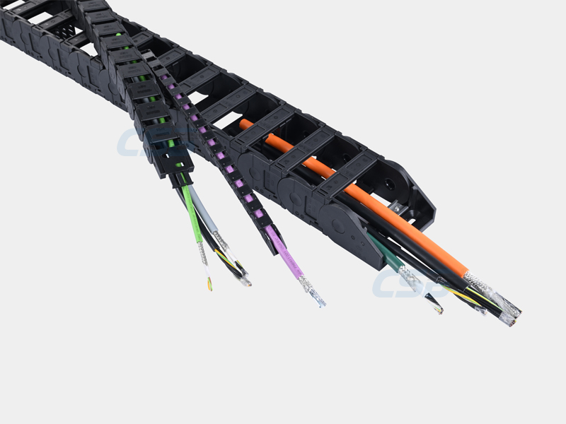 應(yīng)用特性:承載靈敏的總線、數(shù)據(jù)電纜、光纜和能源管線,如電源動(dòng)力線 編碼器線、開關(guān)信號(hào)線、油管、氣管及水管等;模塊化設(shè)計(jì)易于組裝和維護(hù),適用于各類環(huán)境下低噪音長壽命運(yùn)行。